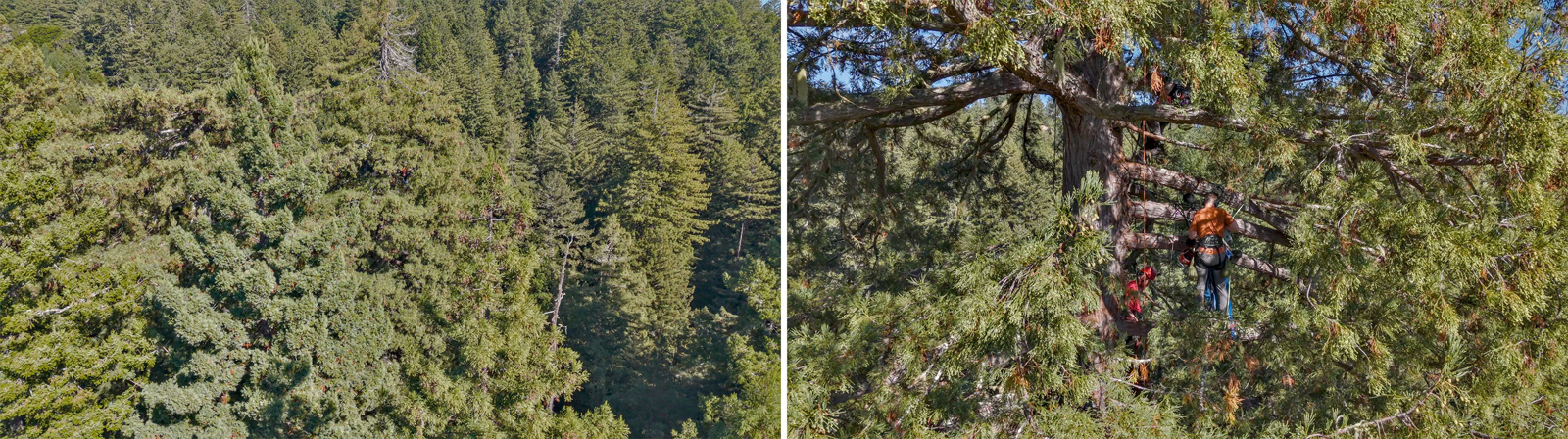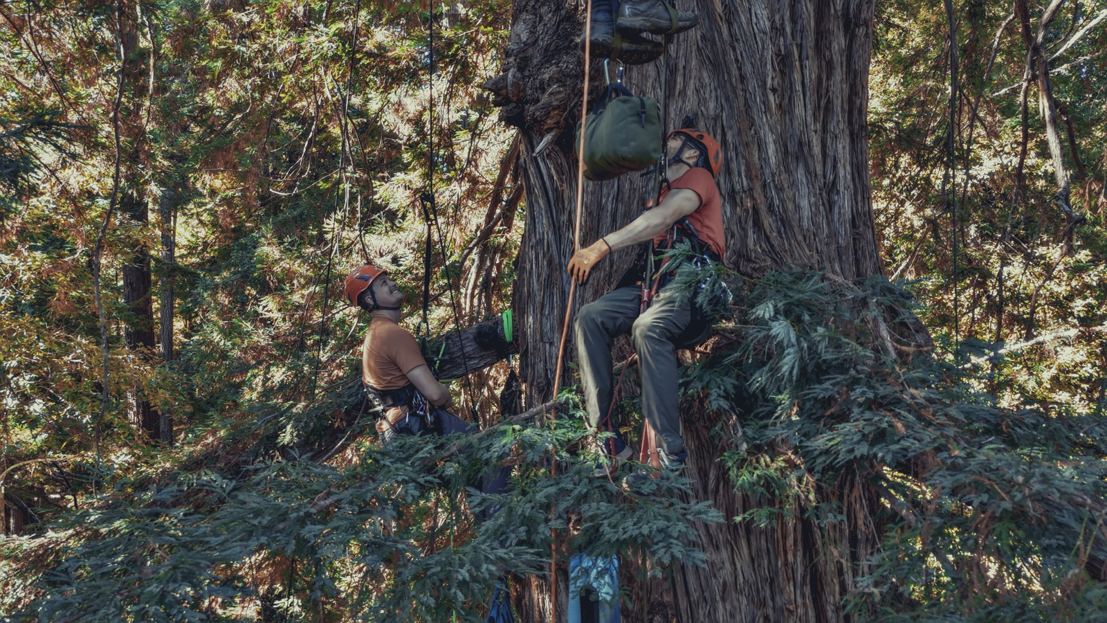 Томас Rex Беверлі з допомогою двох альпіністів підіймається на верхівку секвої