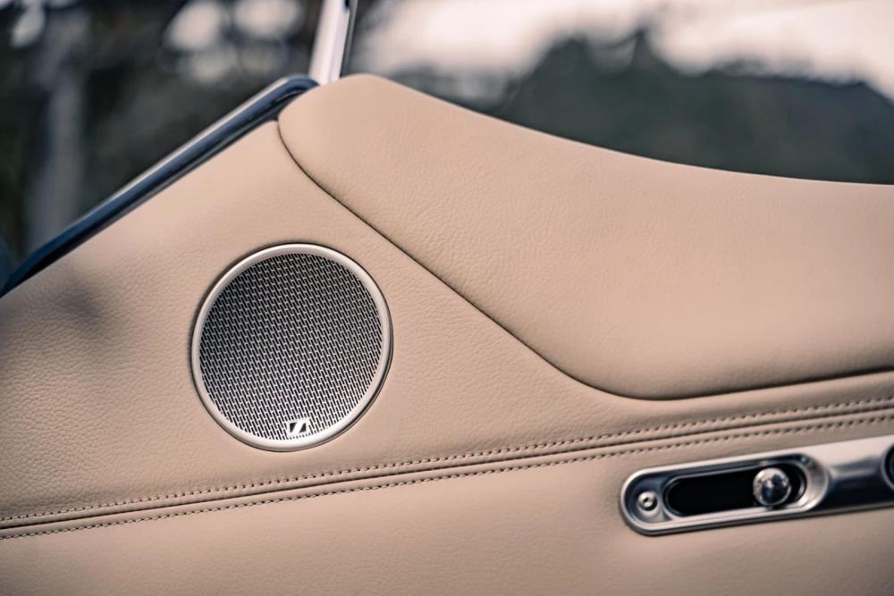 Фірмовий логотип Sennheiser на решітці динаміка Plus Four якнайкраще підкреслює виняткову якість нової акустичної системи та повну її узгодженість з естетикою дизайну цього унікального авто