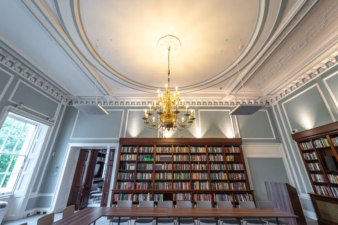 На першому та верхньому поверхах будівлі з метою створити більш зручні та практичні робочі простори всю роботу з монтажу нової AV-апаратури та комунікаційної мережі фахівці компанії CSL Integration виконали паралельно з дбайливою реставрацією відповідних приміщень. Саме їх стараннями стара читальна зала (а ще раніше - їдальня Вільяма Гладстона, уславленого прем'єр-міністра Великобританії) сьогодні стала багатофункціональною залою з мікрофонною конференц-системою TCC 2, цифровими мікрофонами SpeechLine та системою управління Q-SYS, що оптимально відповідає вимогам сучасних лекцій та онлайн-конференцій. Всі кабелі прокладені під підлогою (її реставратори для цього підіймали і потім вкладали на місце), тож повністю непомітні, і стіни та стеля у приміщення бібліотеки, котрі теж є пам'яткою архітектури, мають колишній вигляд.