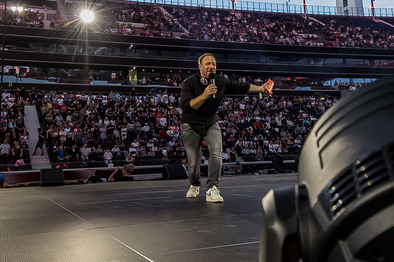 "Портальна акустика працювала приблизно на 3 децибели вище рівня гучності живого звуку, - уточнює Єнс Хойзер. - Тож того самого живого звуку, тобто вокалу й інструментів, що звучали на полі, трибуни насправді не чули. І то було щось дивовижне. Адже зона виступу звучала вельми потужно чи навіть приголомшливо. Ми мали змогу це точно оцінити ще на репетиціях, котрі проводилися без апаратури підсилення".